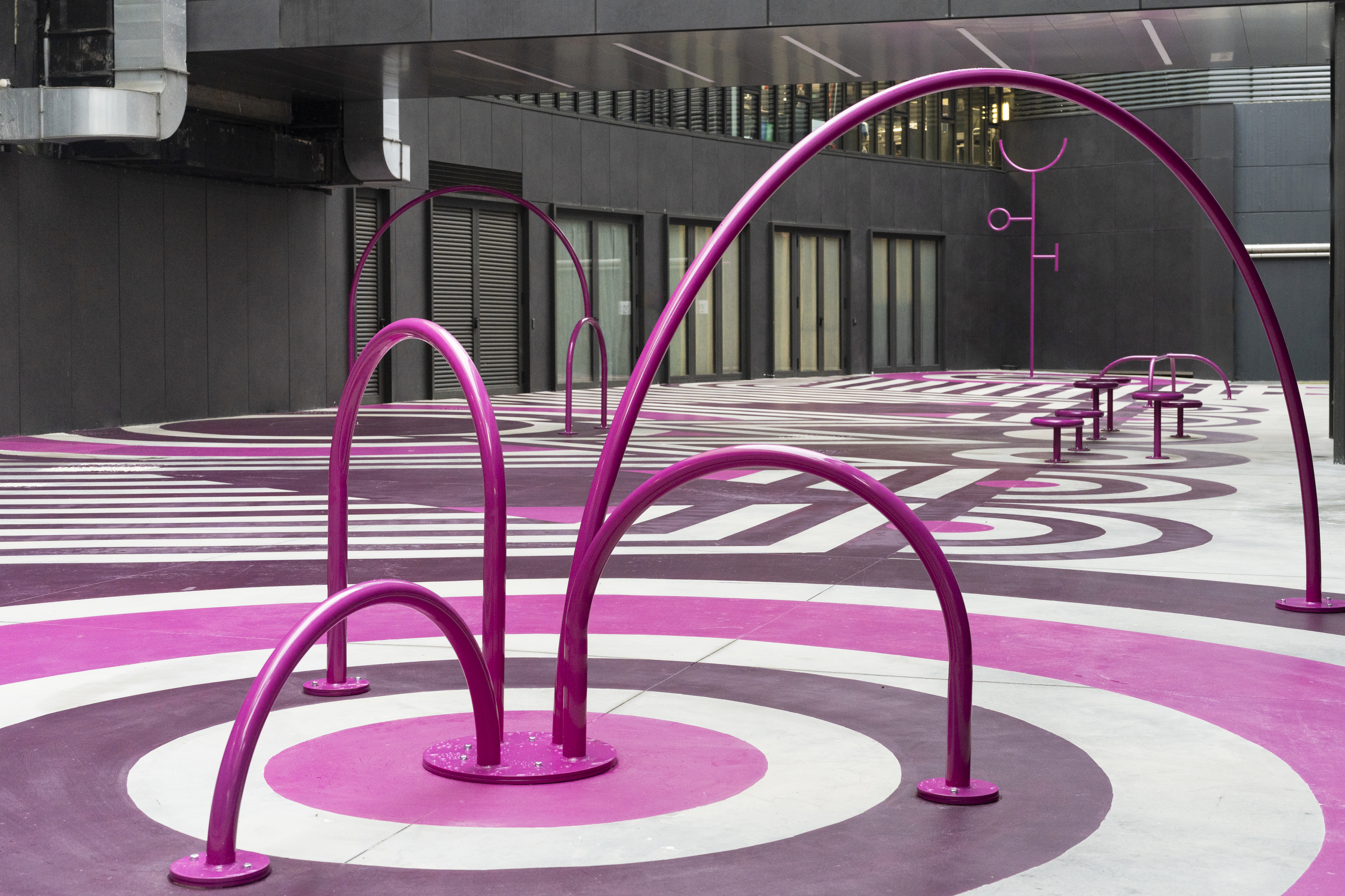 The structures of the different animals can represent a gigantic playground for children, an alternative tool for a work-out, a peculiar place to hang out, or even a bike rack. Due to the simplistic design and construction process, more animals can be imagined to join the herd.